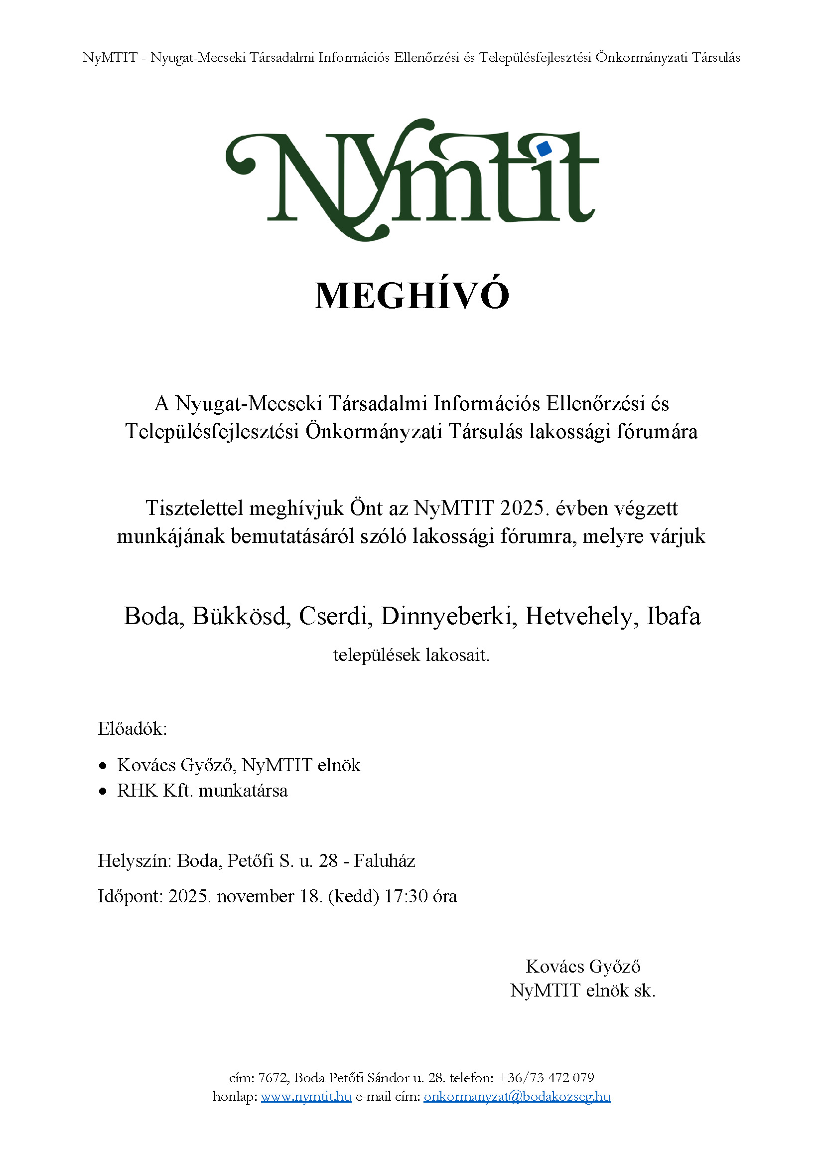 Tisztelettel:  Kovács Győző NYMTIT elnök